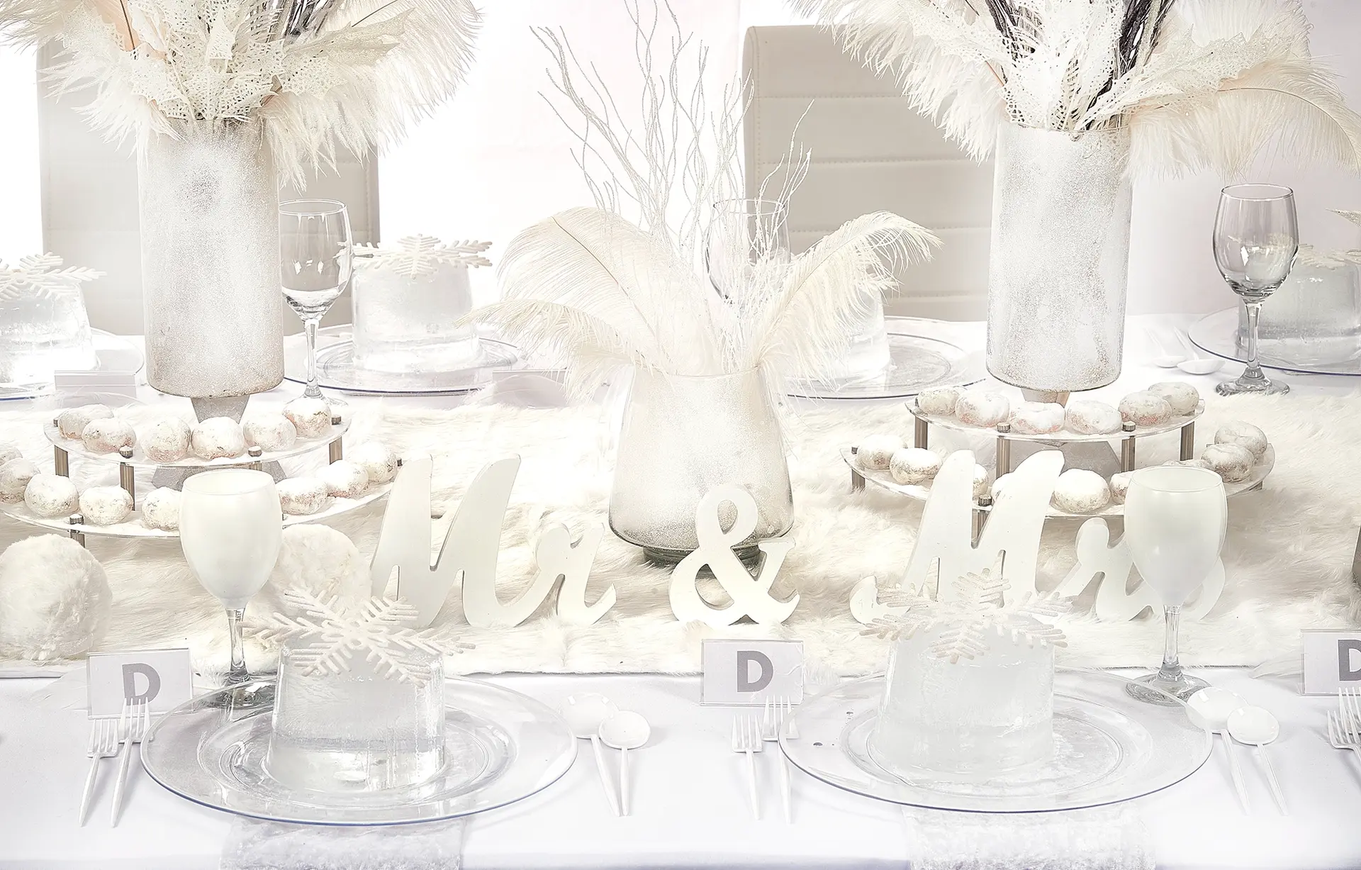 Nothing whispers “magical” quite as dreamily as our Winter White Party. Layers of texture and tone-on-tone beauty create an ethereal effect.